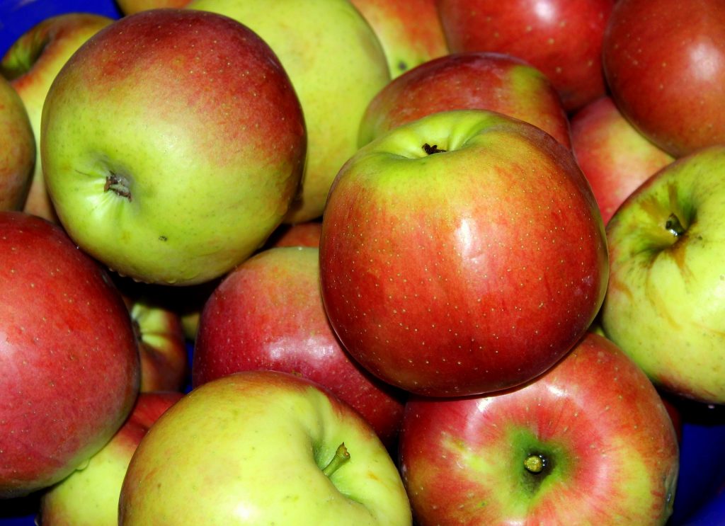 - A crisp, firm, bright red or red/orange patterned fruit with a yellow background
